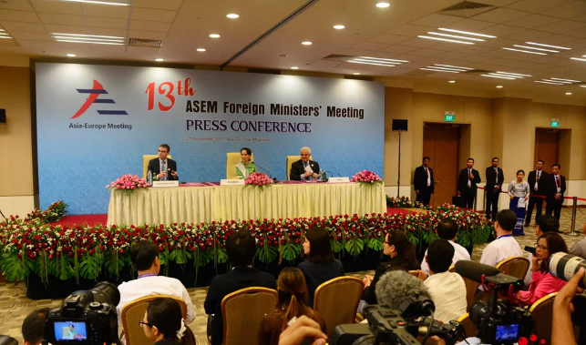 11月21日,杜昂山素季舉行新聞發(fā)布會(huì)表示:緬甸很榮幸主辦第十三屆亞歐外長會(huì)議,本屆亞歐外長會(huì)議共有來自亞歐51個(gè)成員國,亞歐會(huì)議秘書處和歐盟的54個(gè)代表團(tuán)和500多名代表參加了會(huì)議。代表團(tuán)由亞歐外長或高級(jí)代表領(lǐng)導(dǎo)。本屆會(huì)議之前的11月17日至19日期間,舉辦了90多個(gè)雙邊會(huì)議。
