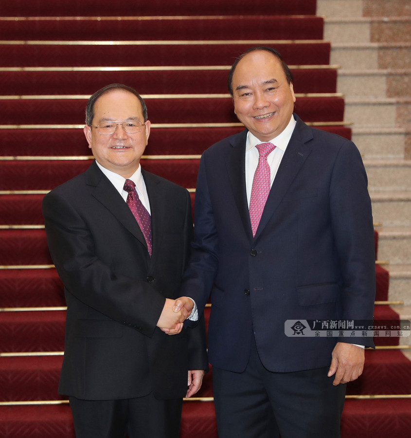 319日,自治區(qū)黨委書記鹿心社在河內(nèi)拜會越南總理阮春福。記者 黃克 攝
